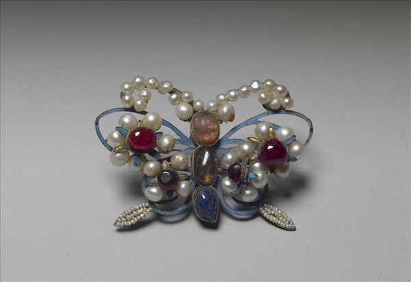 銀鍍金嵌珠寶點翠蝴蝶式帽正