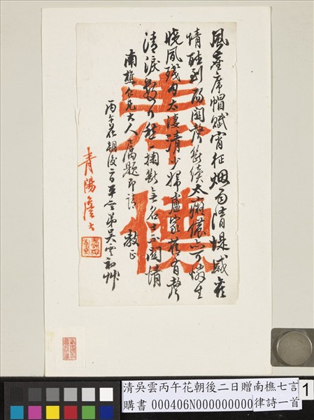 清吳雲丙午花朝後二日贈南樵七言律詩一首
