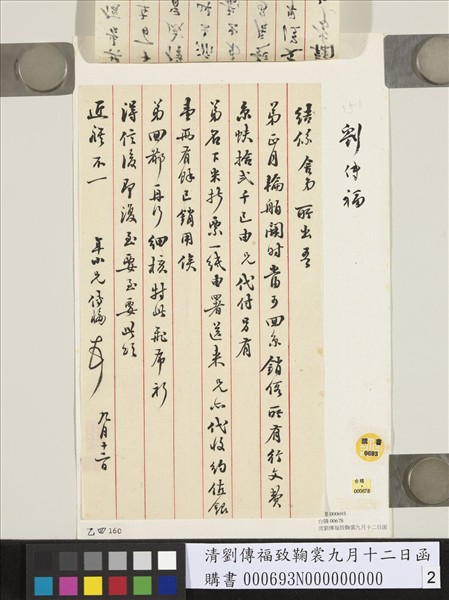 清劉傳福致鞠裳九月十二日函