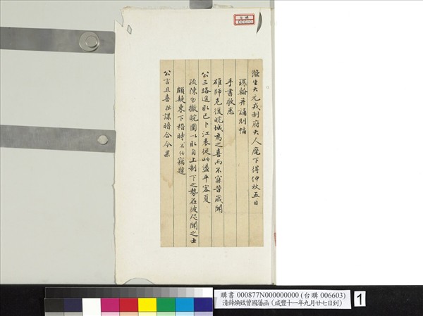 清薛煥致曾國藩咸豐十一年九月廿七日到函 冊頁