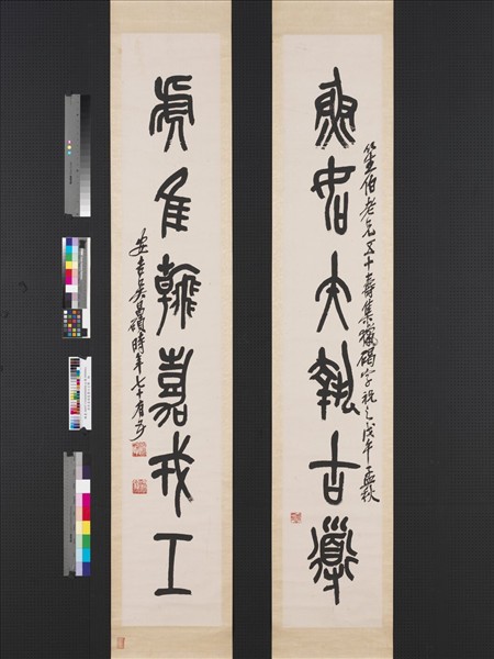 民國吳昌碩篆書六言聯 軸