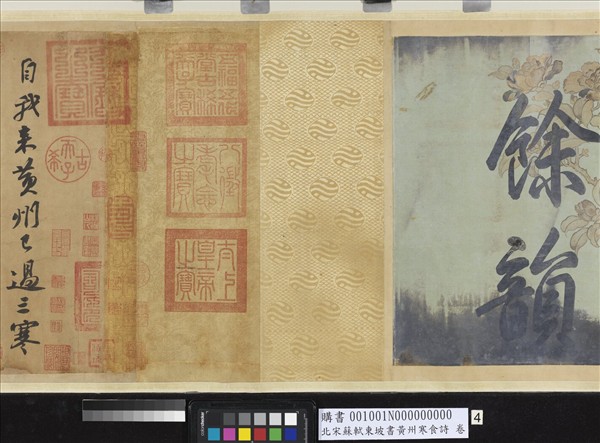 蘇軾(西元一0三六-一一0一年)字子瞻,號東坡,四川眉山人,是宋代一流的書法家、政治家與文學家。 此卷寫於元豐五年(西元一0八二年),東坡在二詩中傾訴因烏台詩案被貶到湖北黃州後之心情,通篇文字隨情緒的起伏而攲側錯落、跌宕生姿,字也越寫越大。東坡寫字不善懸腕,卻自由的寫出充滿個人主義的風格。蘇字結體開闊,筆劃遒勁深厚,墨色濃黑如漆,開創書法抒情的新境界。