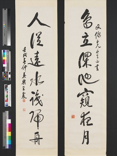 民國王震行書七言聯 軸