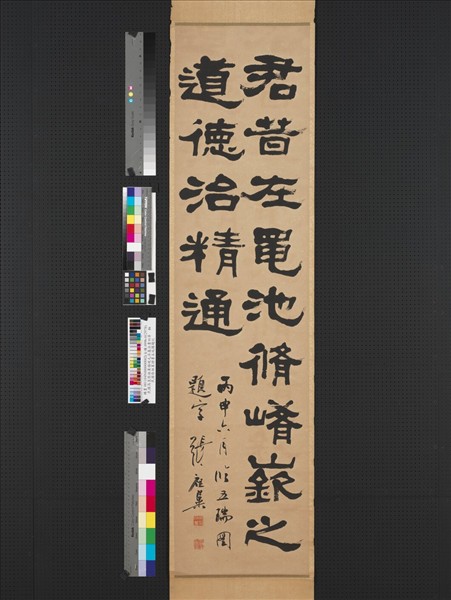 清高邕行書麓山寺碑張祖翼隸書五瑞圖題記楊峴隸書禮器碑毛承基隸書石門頌四屏 軸 張祖翼隸書五瑞圖題記