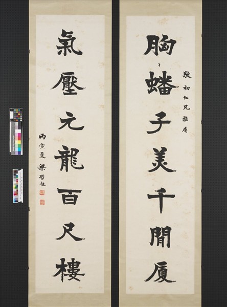 民國梁啟超楷書七言聯 軸