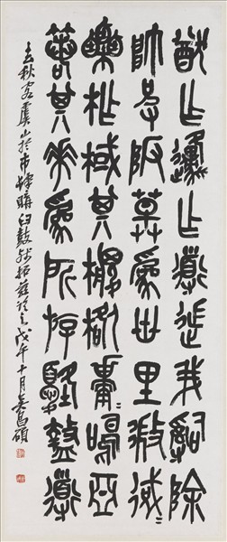 民國吳昌碩李瑞清何維樸鄭孝胥法書四屏 軸 吳昌碩篆書石鼓文