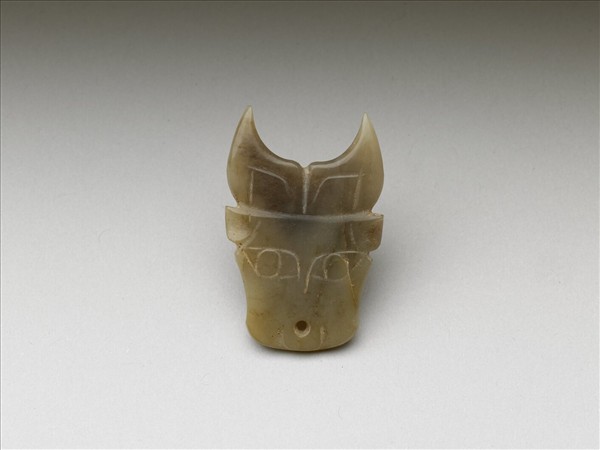 玉牛頭形飾片