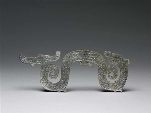本件玉龍和購玉395是成對作品,深青色玉質,器表受沁白化較為明顯,尺寸較同時期玉龍稍大。當戰國玉龍為深碧玉料而且尺寸較大不易佩戴時,一般多為作工粗簡的喪葬玉,例如購玉644即為如此,但本對玉龍雖然尺寸較大且色澤較暗,但因作工精緻華美,仍可能是貴族在世時所用的禮儀佩飾。