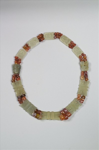 石項飾,由石製組件與瑪瑙珠組成,均有穿細孔。