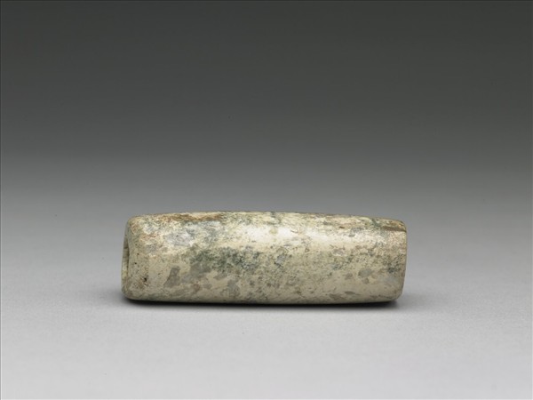 玉質,多深沁為乳白色。斷面為不規則圓形,或略帶方。中孔多由兩面鑽鑿。