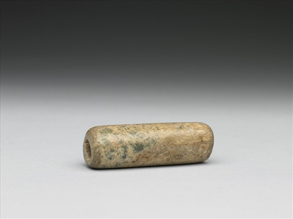 玉質,已深沁成灰黃色。孔徑不圓正,兩端亦不平齊。