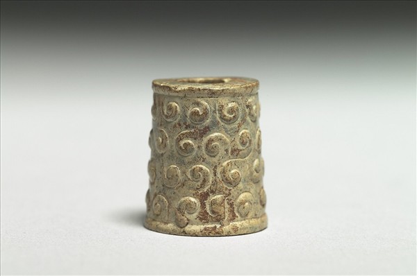 玉質,局部受沁白化,飾以穀紋。