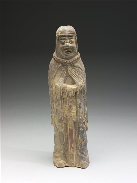 加彩持劍武官俑
