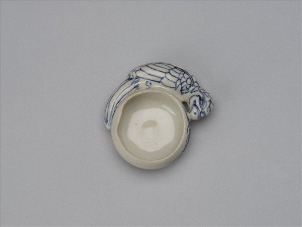 鸚鵡銜桃杯,鳥身以青料白描繪羽翅。鸚鵡銜杯為中國常見造型。本批瓷器應是來自越南海陽省(Hai Duong,紅河流域下游)的Chu Dau窯址,風格上與 1990年代打撈的會安沉船(Hoi An Shipwreck,約為十五世紀末至十六世紀)出土器物相似。