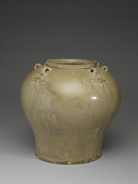 6~7世紀 越南青瓷六耳罐Greenish Yue-tipe Glazed Jar with Six Strap Handle