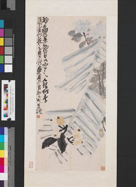 清吳昌碩花果四屏 軸 枇杷芭蕉菊