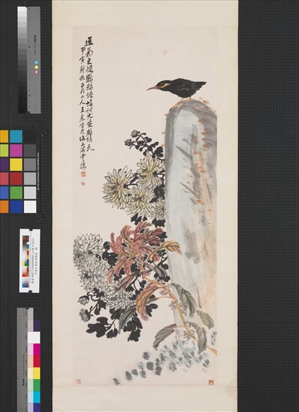 民國王震秋菊鸚鵡 軸