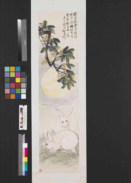 民國王震月桂雙兔 軸