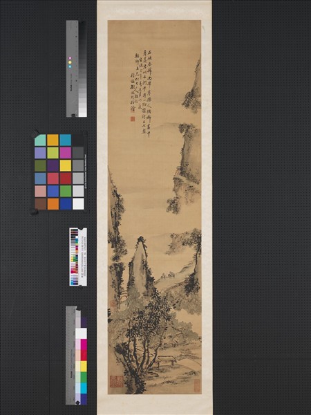 清劉錫玲指畫山水四屏 軸 石硤春歸尚帶寒