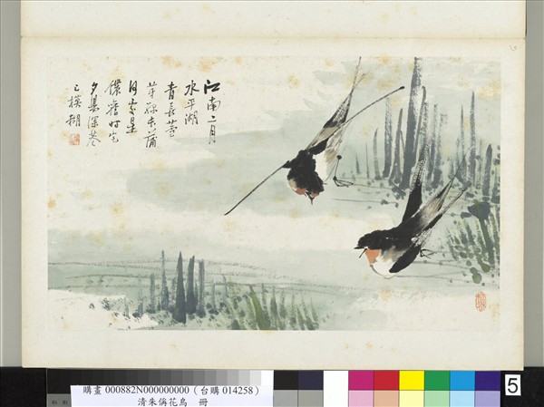 清朱偁花鳥冊 冊 蒲草燕子