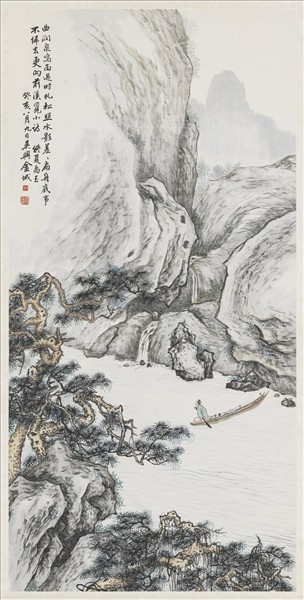 民國金城松溪渡舟 軸