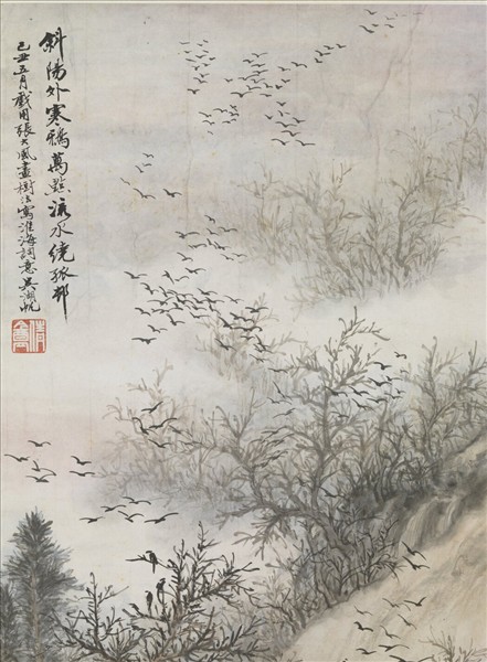 民國吳湖帆斜陽寒鴉 軸