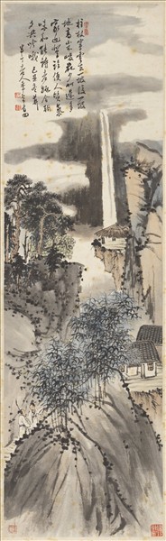民國陳年山水四屏 單片 拄杖穿雲