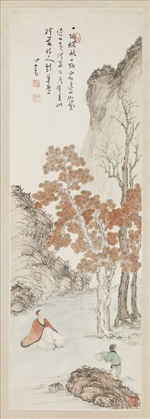 民國溥儒山水四屏 單片 秋景
