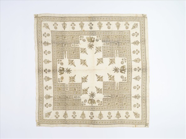 孟加拉地區 金線刺繡棉織方巾
