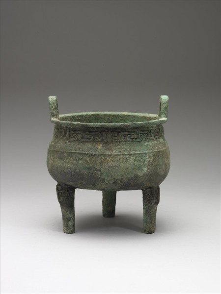 立耳,鼓腹,柱足。口沿下飾變形竊曲紋,腹部中央有一凸弦紋,足上部飾獸面。