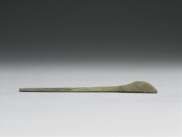 刀柄細長,與刀身連成一體,前端做半圓弧形,有刃。