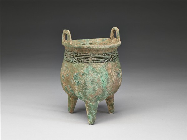 鬲形腹、尖錐空足,一耳對準一足,另一耳在雙足之間,其階狀口沿,其器腹分檔較不顯,較高的尖錐空足的形制特點,與鄭州張寨鬲近。其深刻寬帶獸面紋,皆顯示二里岡時期的形制及紋飾作風。X光片顯示,近花紋處有近似墊片痕跡。