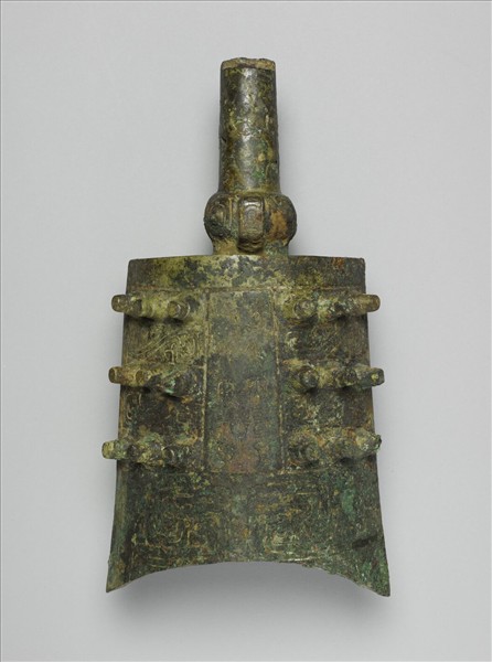 敲擊樂器。為甬鐘形式,上部為泥心長柄,柄近鐘體處飾一周重環紋,並有一用以穿掛懸鉤的環。鐘體呈二瓦相合狀。鐘口朝下成弧曲狀,內壁有「調音槽」。鐘面鉦部的中央一面鑄有銘文,一面平素無紋。鉦部兩側各有三排長乳釘狀枚,兩面共有三十六枚。枚間篆部飾S形夔紋。鼓部中央飾一對相向的變形夔紋。