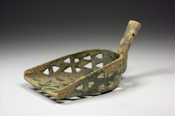 鏟面做凹字形,三角形鏤空,鏟柄稍向上外撇。