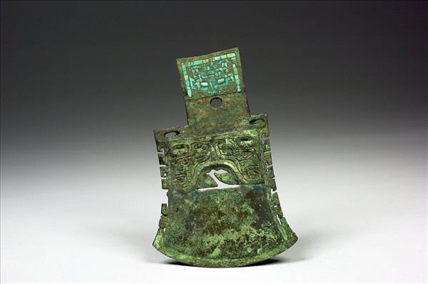 帶肩器身,腰線呈內凹形,內扁平,使得木柲得以夾住扁平內以使用。器身上有獸面紋,獸面紋利牙向著刃線。沒有刃線的兩邊有鉤狀棱脊。內上有松綠石及孔雀石鑲嵌的獸面紋。