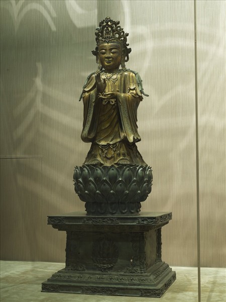 青銅鎏金坐佛三尊像