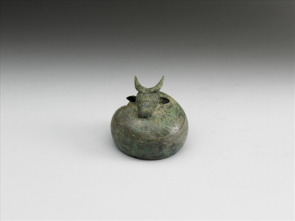 全器作蜷曲牛形,牛身飾鱗紋、綯紋。