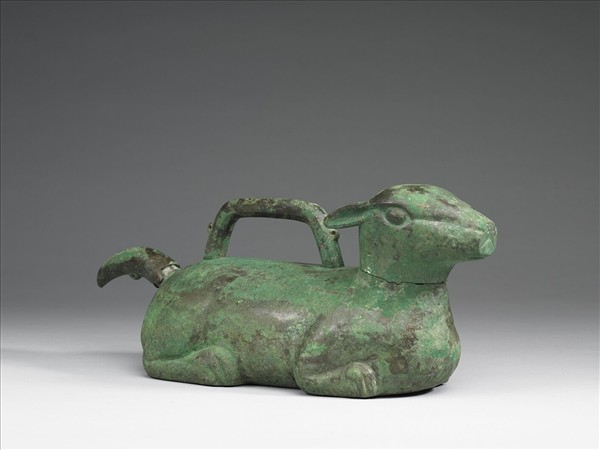 作伏獸形,獸頭後的一對長耳,及蹲伏的四足近似兔子,然上翹的短尾又有些似鹿,體腔中空,背上有八稜形之提把,提把前後各有一枚小半環,與頭尾之半環相對應,可以繫繩連接,其頭尾均可取下,套接處除了有子母口外,還有小卡榫定位。本件的獸嘴是封閉的,開口雖有兩個,較大的一個設在頸部,但尾端的另一個洞孔更不可能作為流口。