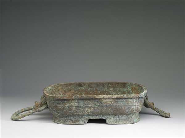 全器形制為長方體,唇口,口大腹淺,如現代的盆。自口至足器壁斜坦,淺腹表面有兩道橫向弦紋,近四角處留有範線。腹部與圈足相連,方形圈足的每一邊中央有一個缺口,分成四個矩形的足。短邊腹壁一側有雙繫附繩索形提梁,另一側繩索形提梁已殘,器內鑄銘「史」。