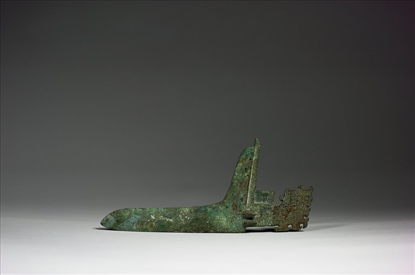 有胡戈,援狹長,胡有三穿。欄上端飾有二浮雕蟬紋,內飾陰刻鳥紋,帶鏤空邊緣。