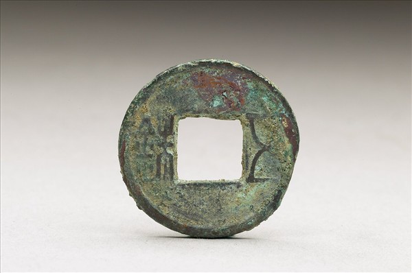 方孔圓錢,正面有篆書:「五銖」二字,背面無文。