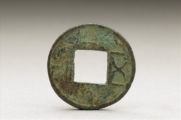 方孔圓錢,正面有篆書:「五銖」二字,背面無文。
