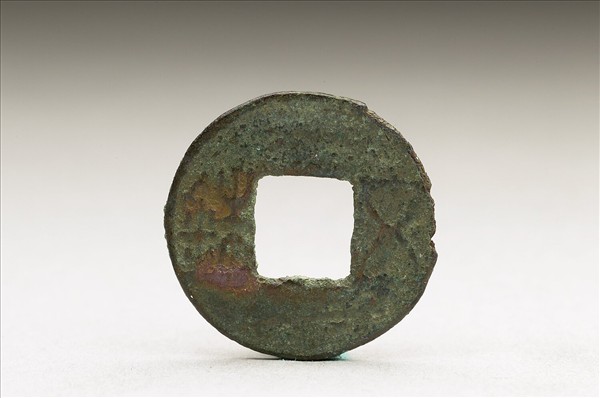 方孔圓錢,正面有篆書:「五銖」二字,背面無文。