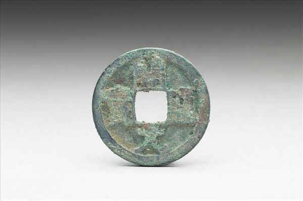 方孔圓錢,正面有楷書:「開元通寶」四字,漫漶不清,或以為「開通元寶」四字,背面無文。