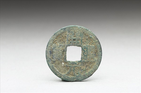 方孔圓錢,正面有楷書:「開元通寶」四字,漫漶不清,或以為「開通元寶」四字,背面無文。
