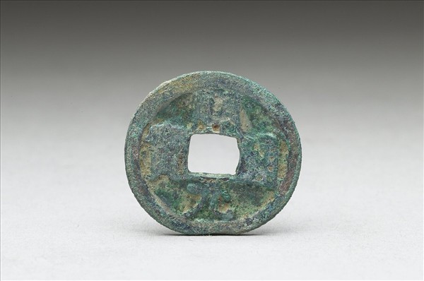 方孔圓錢,正面有楷書:「開元通寶」四字,漫漶不清,或以為「開通元寶」四字,背面無文。