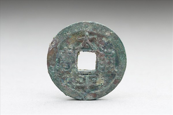 方孔圓錢,正面有隸書:「太平通寶」四字,背面無文。