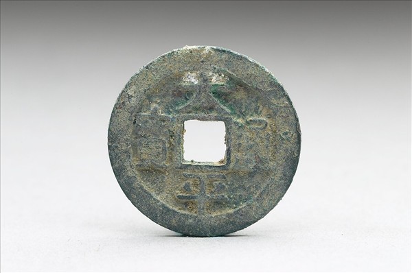 方孔圓錢,正面有隸書:「太平通寶」四字,背面無文。