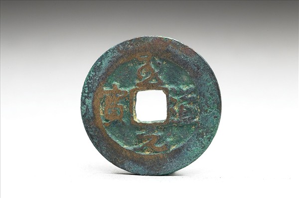 方孔圓錢,正面行書:「至道元寶」四字,背面無文,傳錢文為宋太宗手書。