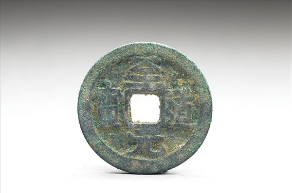 方孔圓錢,正面楷書:「至道元寶」四字,背面無文,傳錢文為宋太宗手書